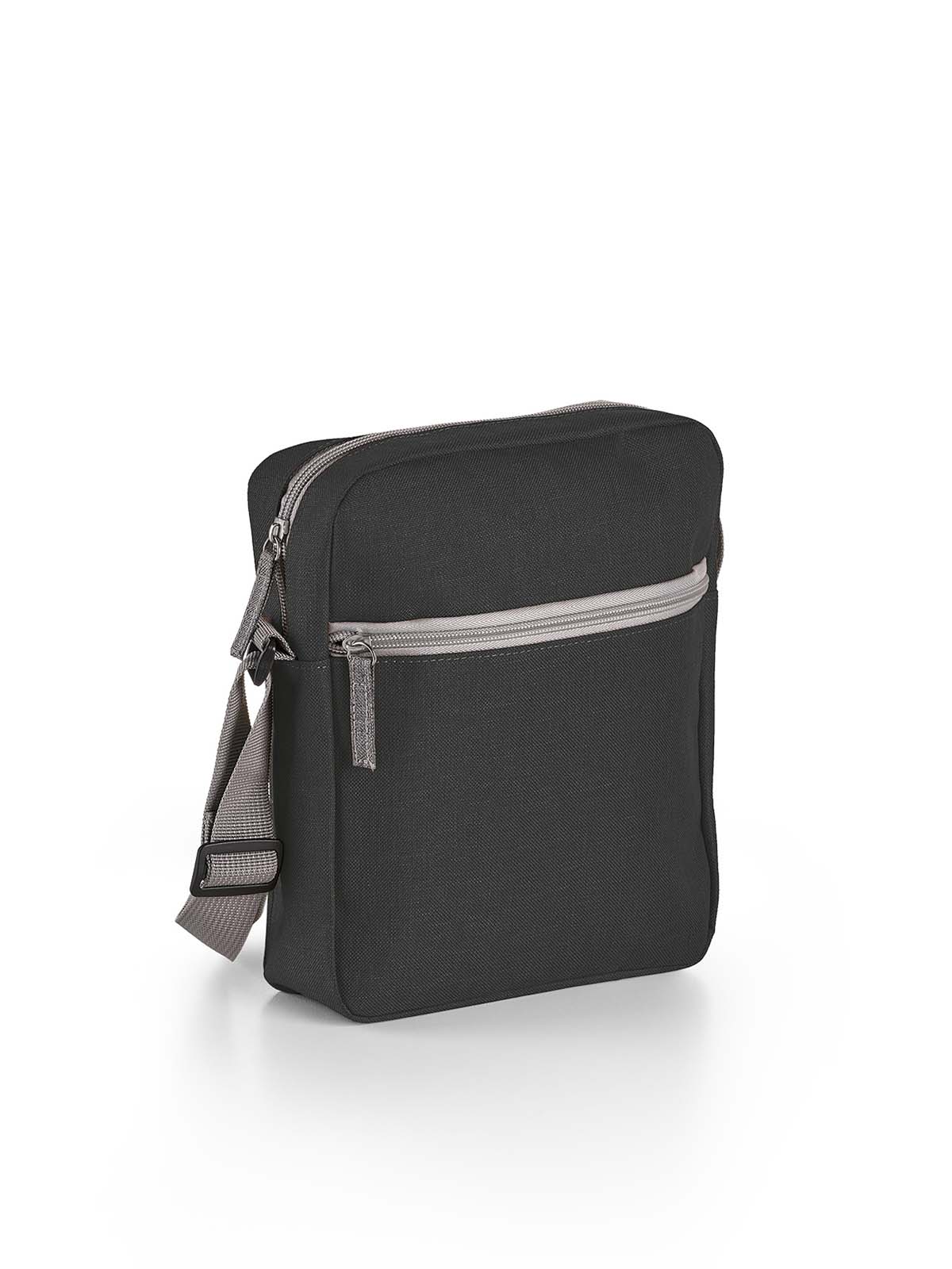 Tracolla regolabile con tasca principale a soffietto dotata di tasca frontale con zip.
