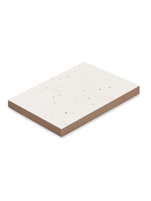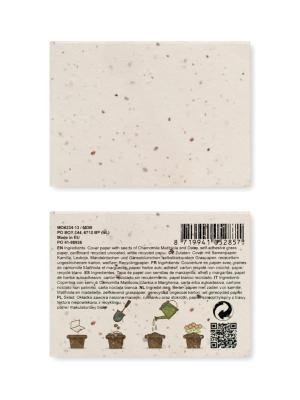 Set memo con copertina morbida con 50 fogli di carta con semi. Una volta terminati tutti i 50 fogli di carta, potete piantare la copertina nel terreno per far crescere un prato fiorito.