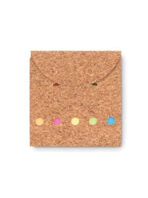 Blocco note adesivo con busta in sughero. 125 fogli di grandi blocchi di note adesivi gialli e 25 fogli di 5 segnapagina in colori assortiti.