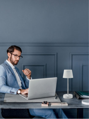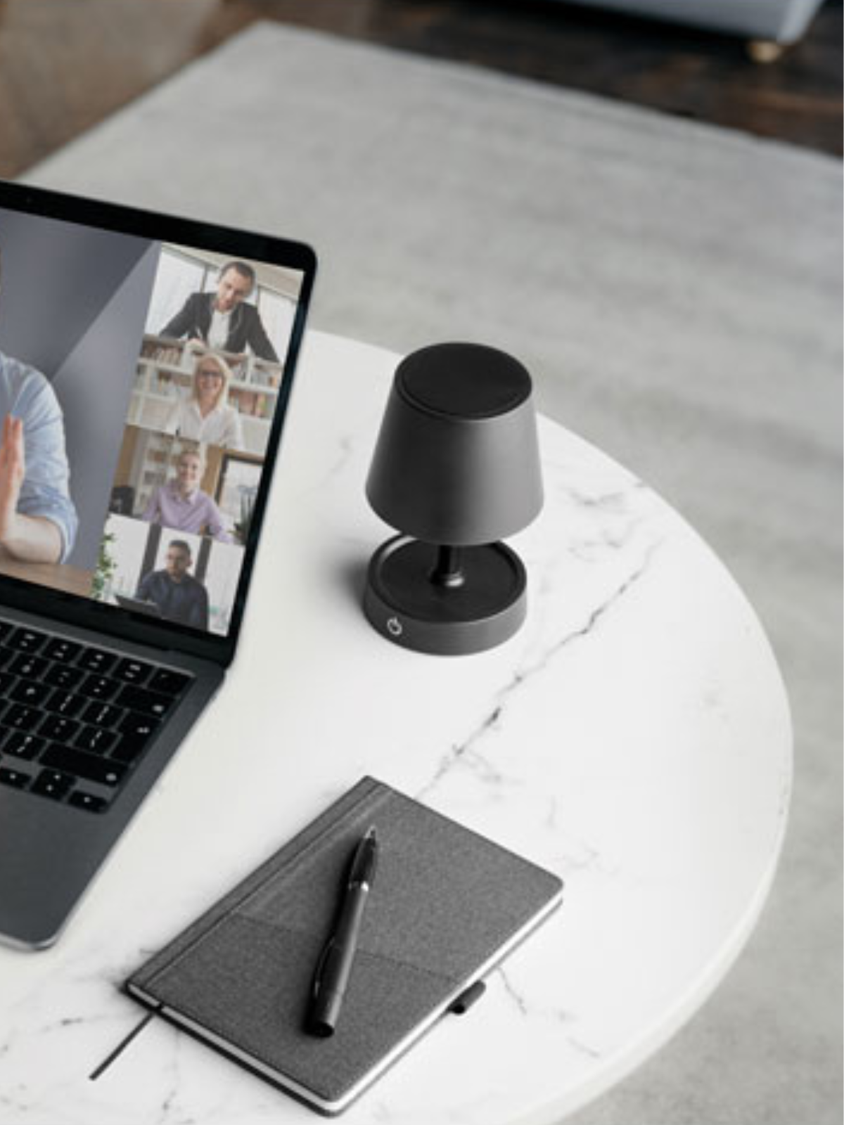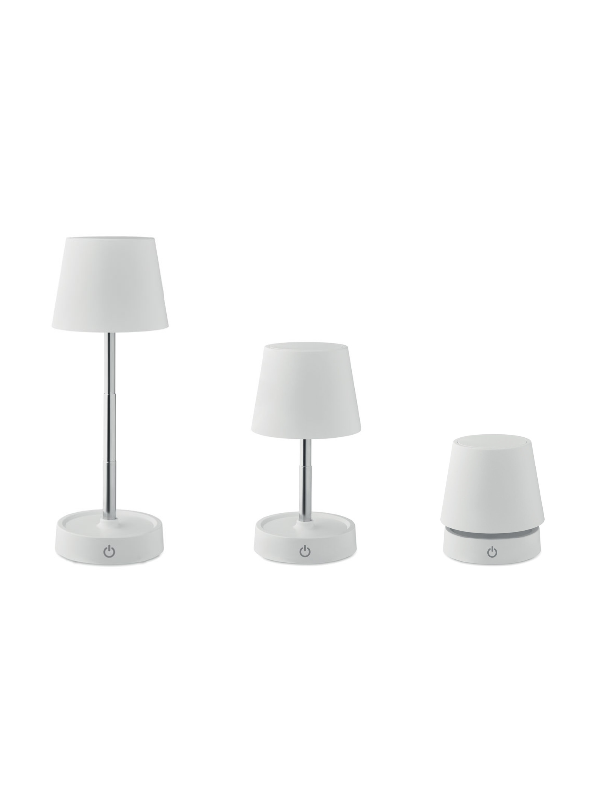 Lampada da tavolo USB retrattile e ricaricabile in ABS. 12 luci LED con intensità regolabile e dimmerazione continua. Batteria incorporata: 1200 mAh (6 ore di funzionamento a carica completa). Incluso cavo di ricarica da USB Tipo-A a Tipo-C.