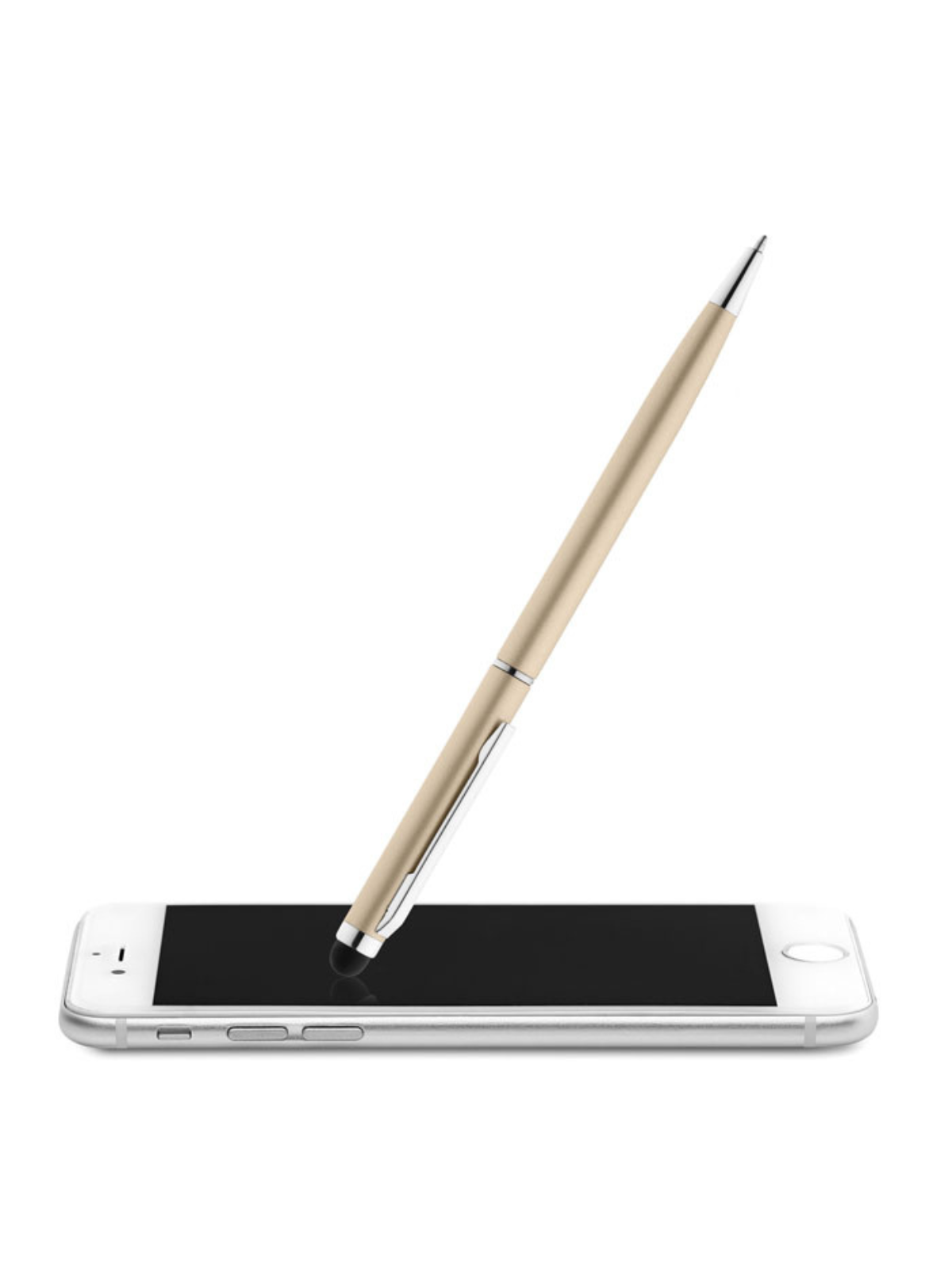 Penna a sfera twist-action in alluminio riciclato con stilo e clip cromata lucida. Inchiostro blu.