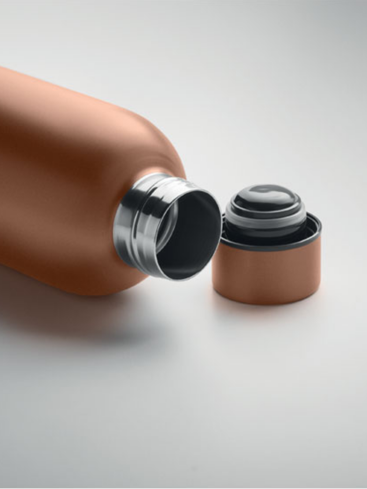 Bottiglia sottovuoto isolante a doppio strato in acciaio inox riciclato (90%).