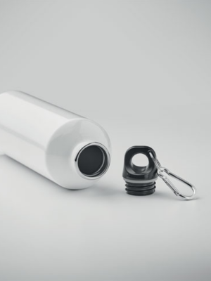Bottiglia a singolo strato in acciaio inox riciclato (90% acciaio inox riciclato e 10% acciaio inox) con moschettone. Il moschettone non è adatto all'arrampicata (uso non professionale).Poiché si tratta di una bottiglia a parete singola, si può verificare la dispersione di calore.