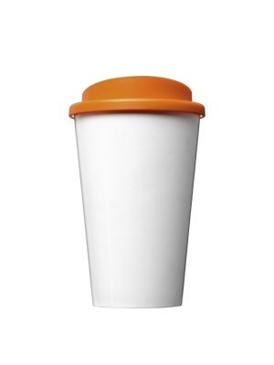 Bicchiere termico a doppia parete con coperchio twist. Realizzato in materiale riciclato al 70% (bicchiere riciclato e interno nero), con un coperchio in plastica PP standard. Il bicchiere è completamente riciclabile, lavabile in lavastoviglie e adatto al forno a microonde.
