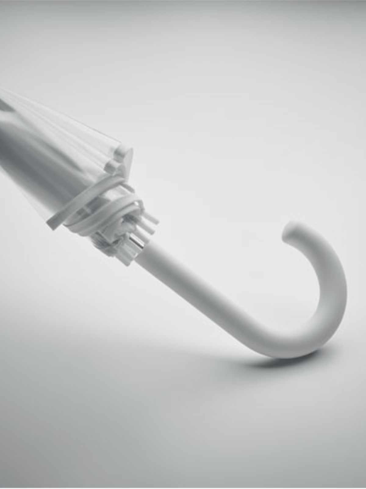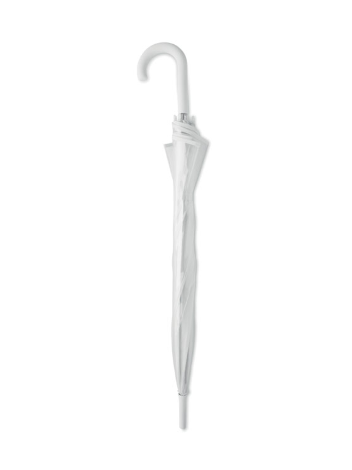 Ombrello dritto da 23''in POE con bordatura in PG e 1 pannello in poliestere per l'area di stampa. Apertura manuale. Struttura in fibra di vetro. Stelo cromato con punte in plastica. Manico rifinito in gomma.