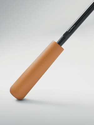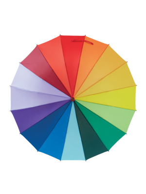 Ombrello da 27 pollici a 16 pannelli arcobaleno ad apertura automatica in Pongee 190T con fusto in legno, costole in fibra di vetro, punte in metallo placcato nero.
