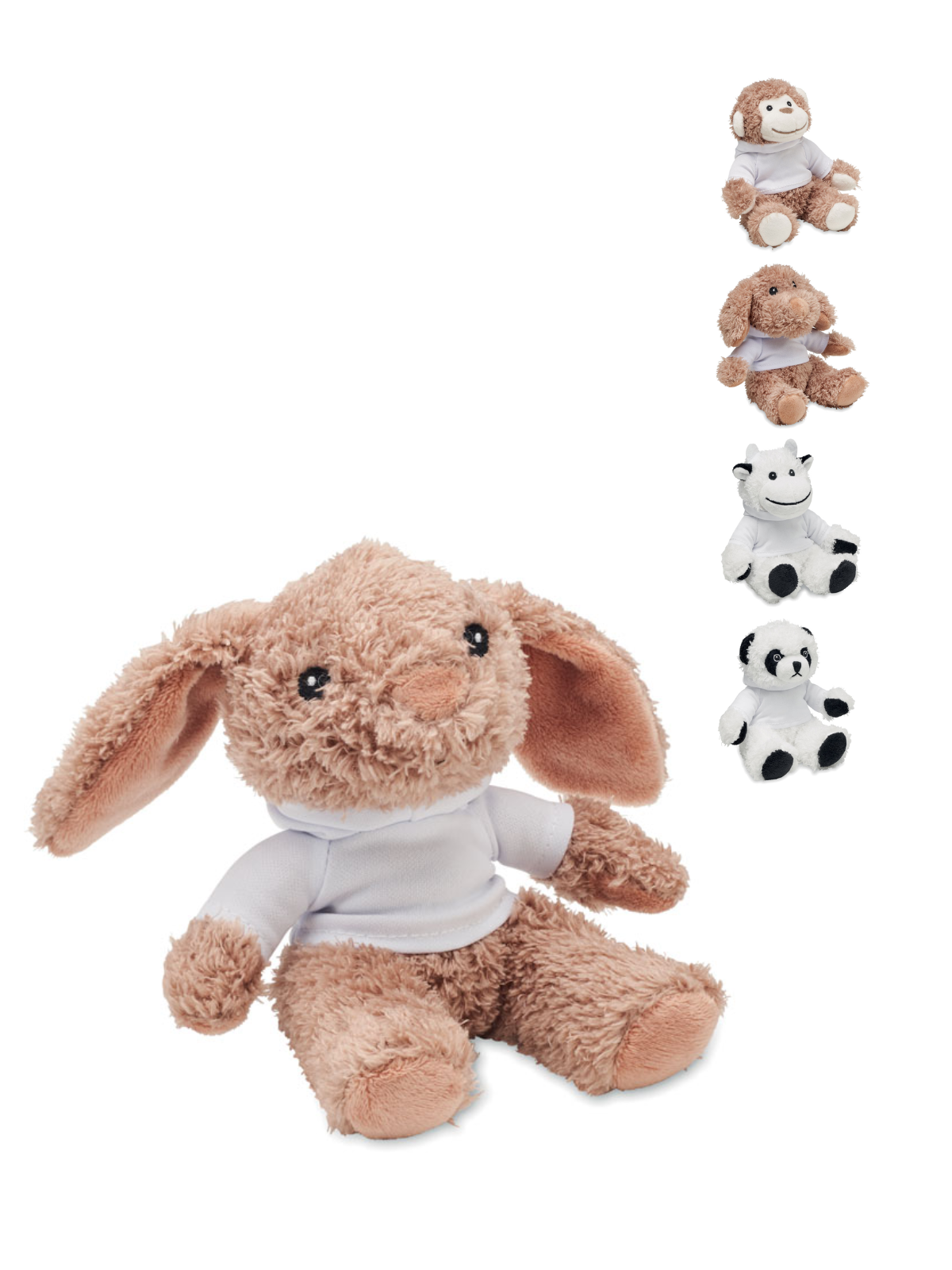 Peluche a forma di animaletto che indossa una felpa con cappuccio. Ideale per la stampa in sublimazione.
