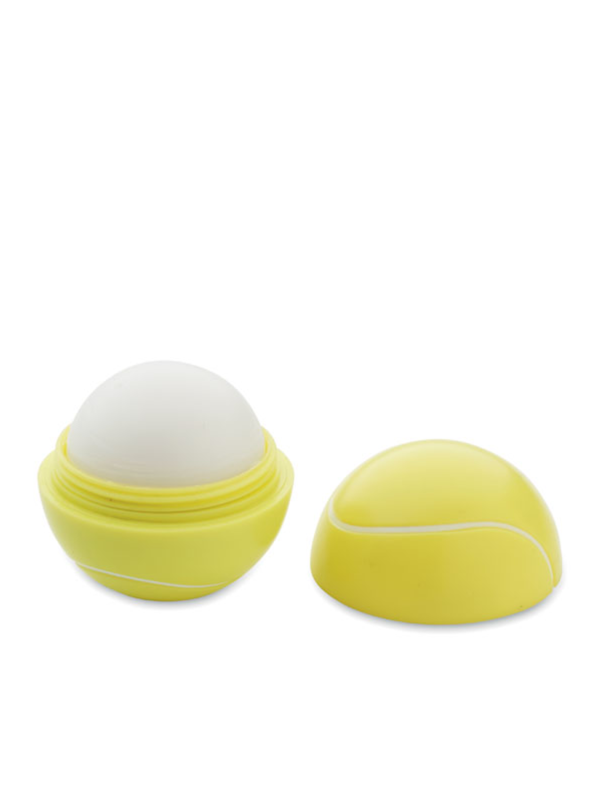Balsamo labbra in ABS a forma di pallina da tennis. SPF10. Gusto: Vaniglia.