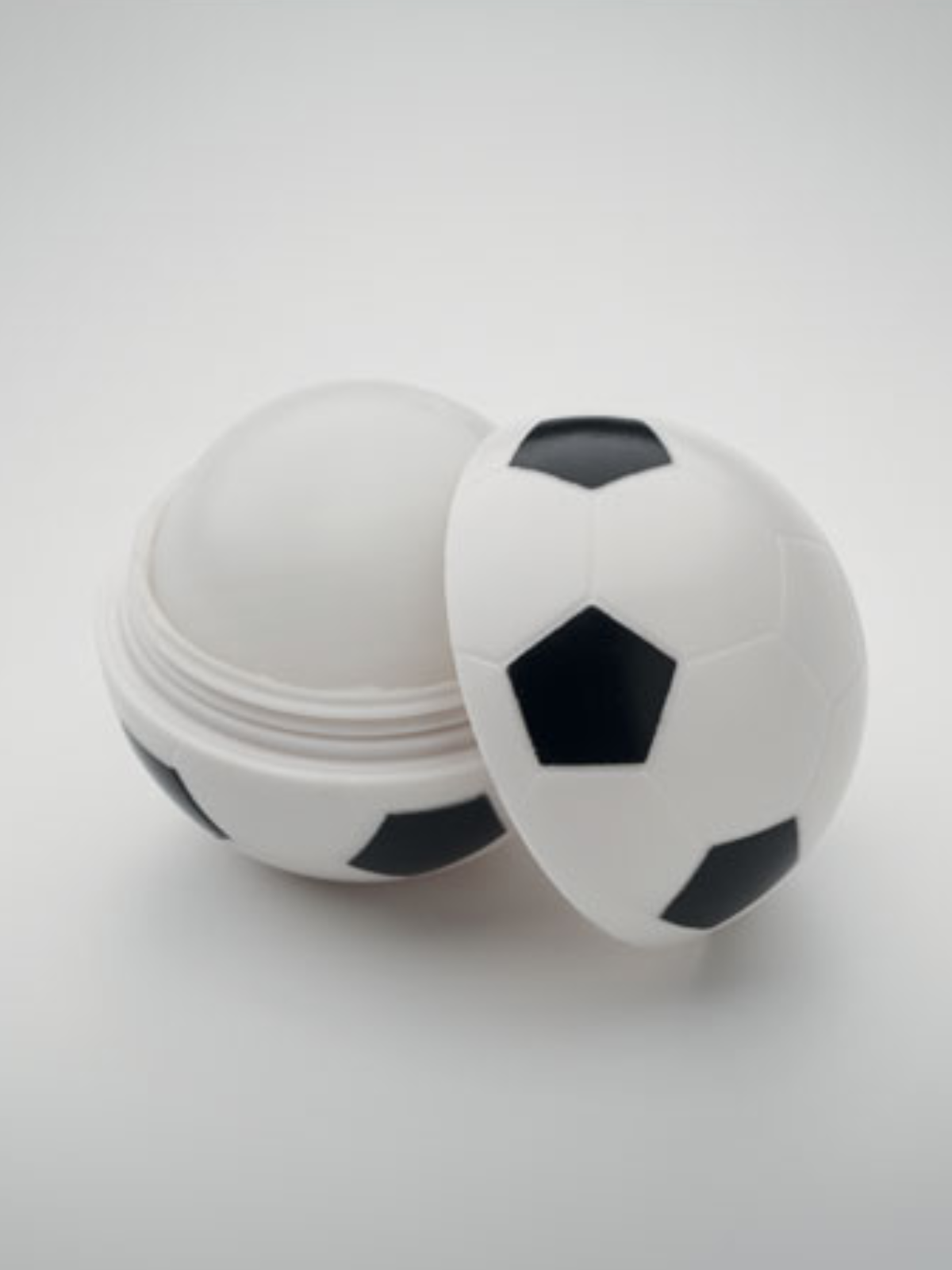 Balsamo labbra in ABS a forma di pallone da calcio. SPF10. Gusto: Vaniglia.