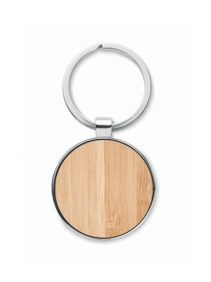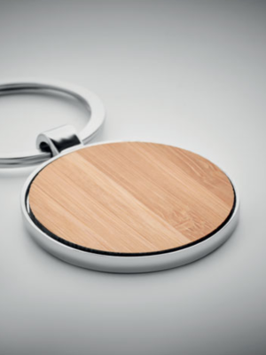 Portachiavi rotondo in lega di zinco con frontale in bamboo. Il bamboo è un prodotto naturale, potrebbero esserci lievi variazioni di colore e dimensioni tra un articolo e l'altro.