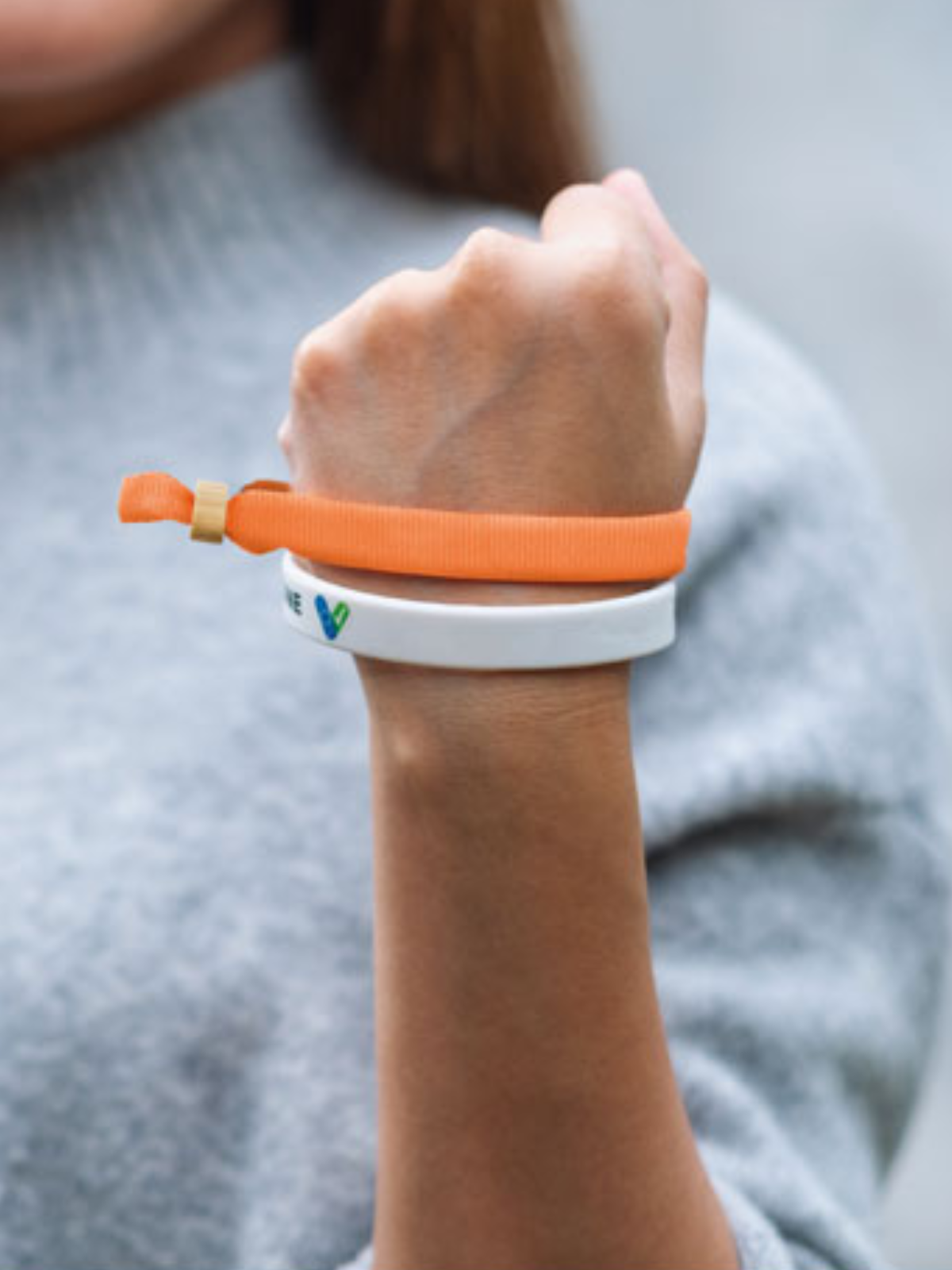 Braccialetto per eventi in poliestere 300D RPET con chiusura ad anello in bamboo.