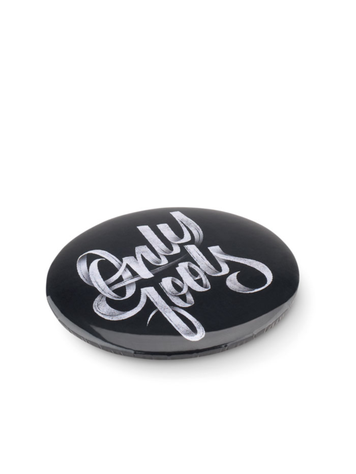 Spilla a bottone con interno in carta. In caso di ordine neutro l'articolo viene spedito smontato.