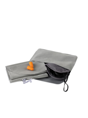 Set viaggio 3 pezzi: cuscino gonfiabile, maschera per occhi e tappi per le orecchie. Custodia in velluto.