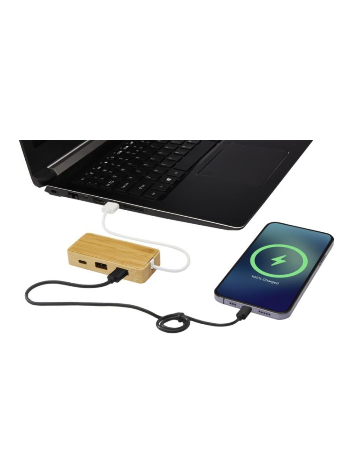 Hub USB 2.0 in bambù con 2 porte USB-A e 1 porta per USB Tipo-C. Sistemi operativi compatibili: Windows Vista, Windows XP, Windows Me, Win2000, Windows 7, Windows 8, Windows10, Mac OS X v10.8. Fornito in confezione regalo con manuale di istruzioni (entrambi realizzati con materiali ecosostenibili).