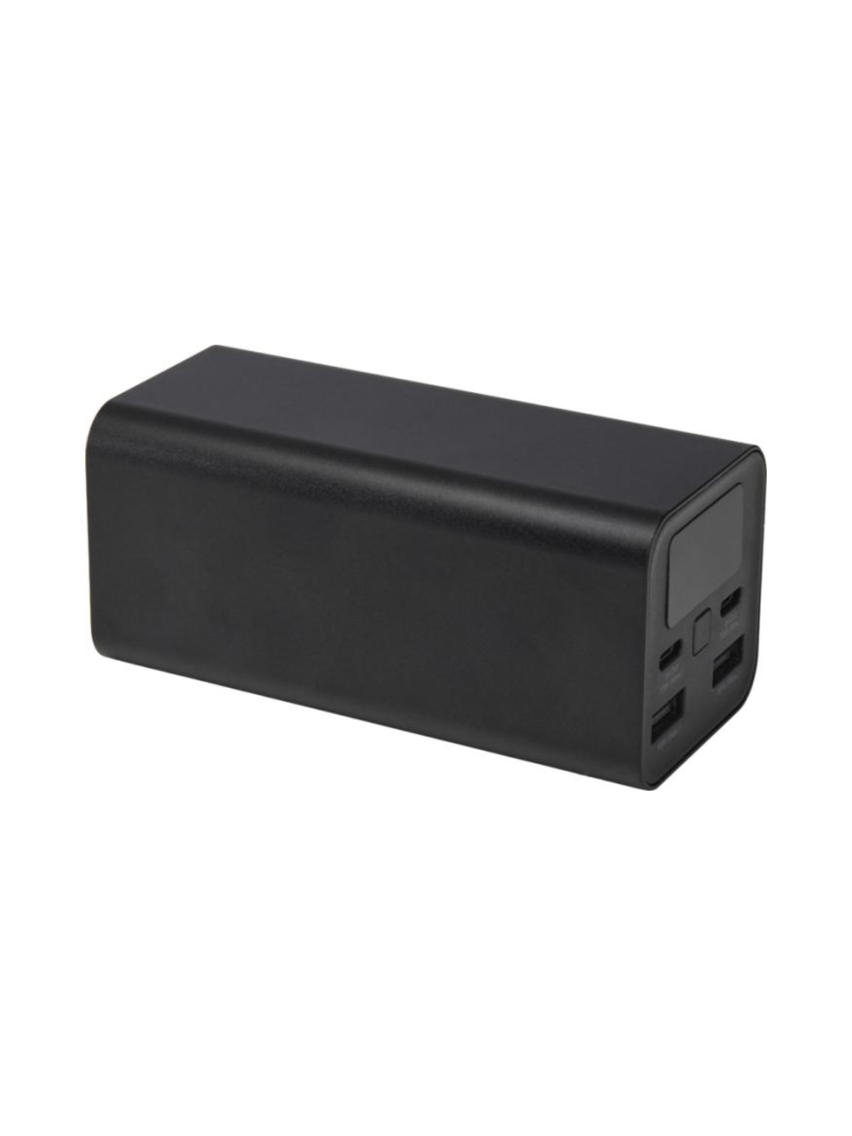 Il power bank da 20.000 mAh, realizzato in alluminio riciclato, consente di alimentare i dispositivi anche durante gli spostamenti. Progettato per essere versatile, è dotato di due porte di Tipo-C da 70 W ad alta velocità e di due porte USB-A da 18 W, perfette per ricaricare la maggior parte dei computer portatili, tablet e smartphone. Il display integrato mostra le informazioni sull'alimentazione in tempo reale, includendo la percentuale di ricarica e i dati sulla potenza erogata. È incluso un cavo Tipo-C da 70 W, per poter caricare i dispositivi o per la ricarica del power bank. Alluminio riciclato.