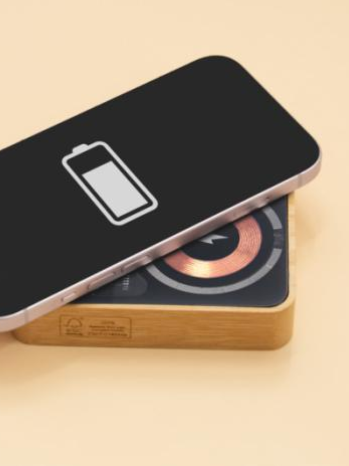 Power bank da 15 W e 10.000 mAh MagSafe con finitura in bambù, dotato di una potente uscita Tipo-C da 20 W (ricarica rapida PD). Dispone di un cavo di ricarica 3 in 1 compatibile con dispositivi Tipo-C, Android e iPhone, che consente di caricare più dispositivi contemporaneamente. Per i telefoni privi di tecnologia MagSafe integrata (iPhone 12 e successivi), è incluso un anello magnetico. Il power bank è personalizzabile con un logo luminoso a colori o inciso al laser. Fornito in una confezione regalo.