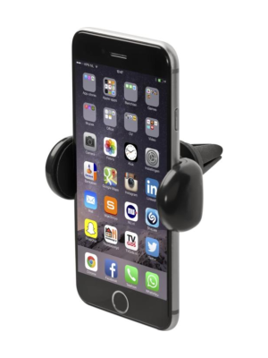 ?Supporto per telefono che si inserisce nella presa d'aria del cruscotto dell'auto e mantiene il telefono cellulare in una posizione comoda e sicura. Compatibile per tutti i telefoni. Rotazione di 360 gradi e apertura bilaterale. Plastica ABS.